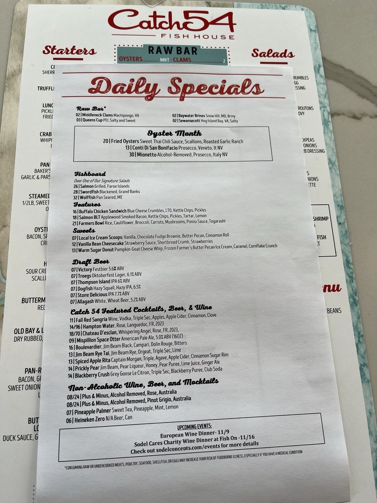 Catch 54 is a top-notch establishment located in Selbyville, DE, offering a delectable menu that beautifully combines New American cuisine with delicious seafood options. The restaurant is not only known for its mouthwatering dishes but also for its inviting ambiance, perfect for a casual night out.